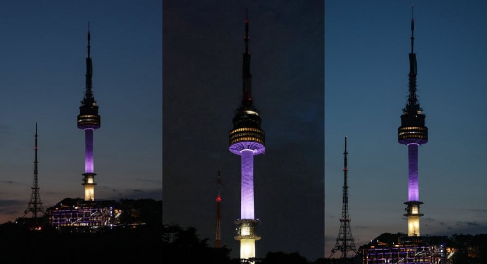 N Seoul Tower (Namsan Tower) shines bright purple as part of BTS's 10th anniversary '2023 FESTA' celebration